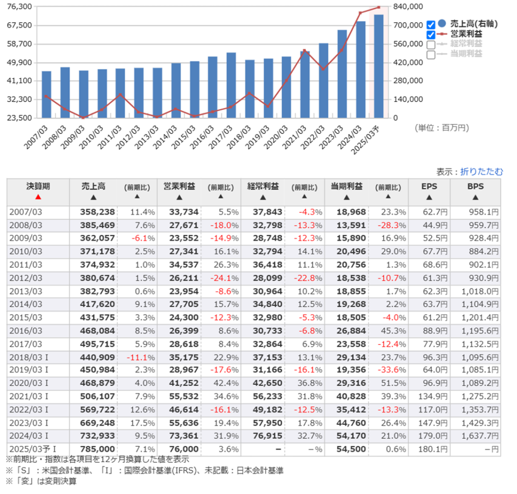 全体的には、業績は好調に見えますが、これが一時的要因でないことを確認するために、長期的な業績推移を見ていきます。