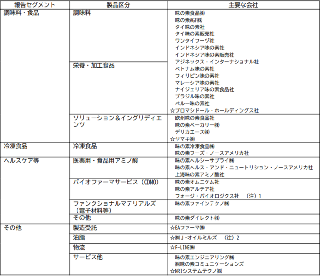 調味料・食品事業と冷凍食品事業についてはわかりますが、意外なのはヘルスケア等事業ですね。
