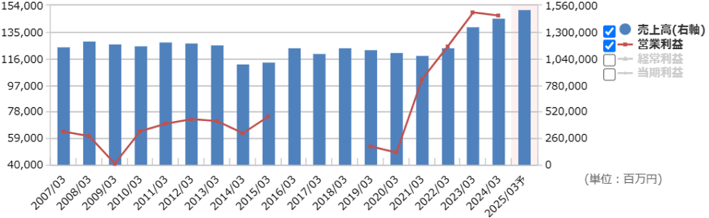 業績は好調に見えますが、これが一時的要因でないことを確認するために、長期的な業績推移を見ていきます。