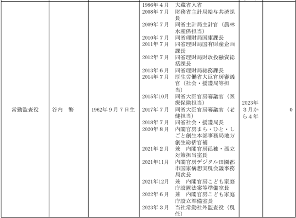 そして、役員には天下りと思われる人物が4人もいます⁉財務事務次官、元中国大使・フランス大使、検事総長経験者と豪華な経歴ですね…。