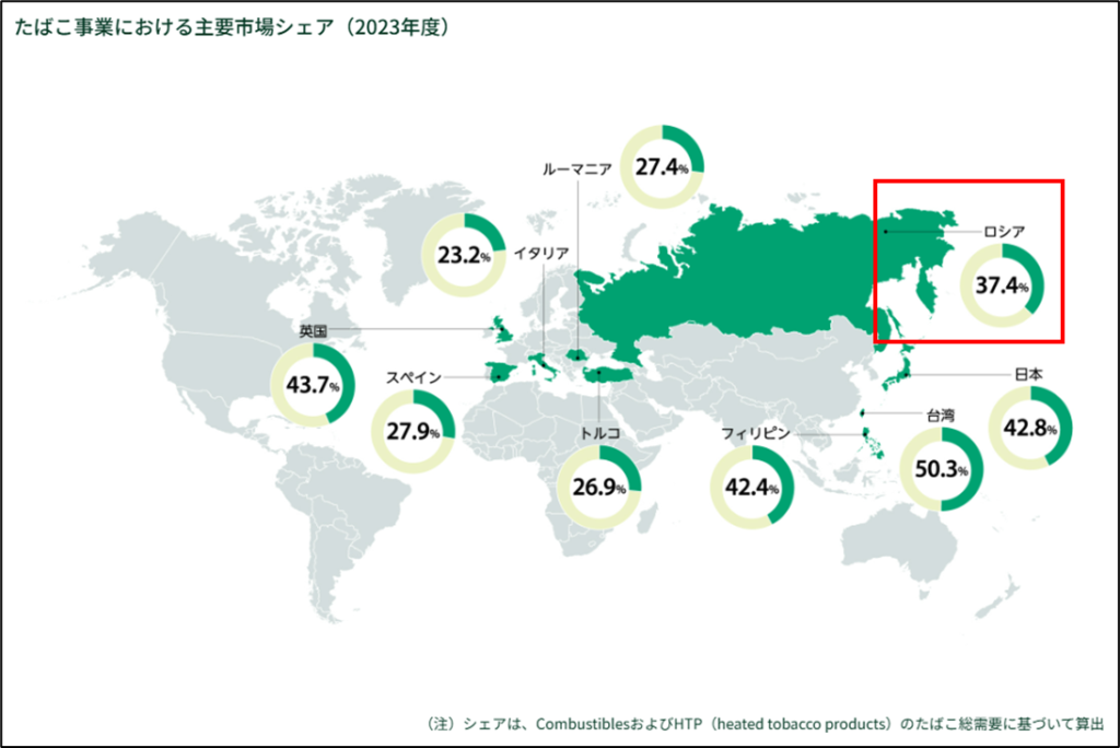 JTは、ロシア国内で37.4%のシェアを獲得しており、重要な市場の一つです。