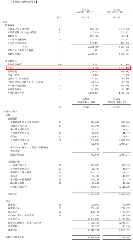 2兆円を超えるのれんが計上されていますね。なんと、総資産のうち約36%がのれんです⁉
