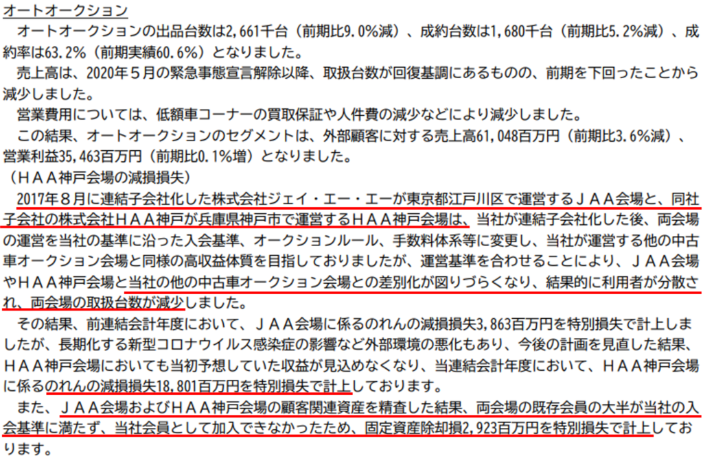 オートオークションは、広大な土地を必要とするビジネスで、それが参入障壁にもつながっているので、有形固定資産が増加するのはしかたないかなと思います。