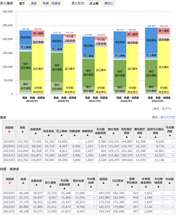 やはり、土地・建物などの有形固定資産を多く抱えるビジネスなので、財務安全性を強く意識しているのかなと思います。リスク資産を多く保有しているものの、リスク管理はしっかりしている企業だなという印象です。