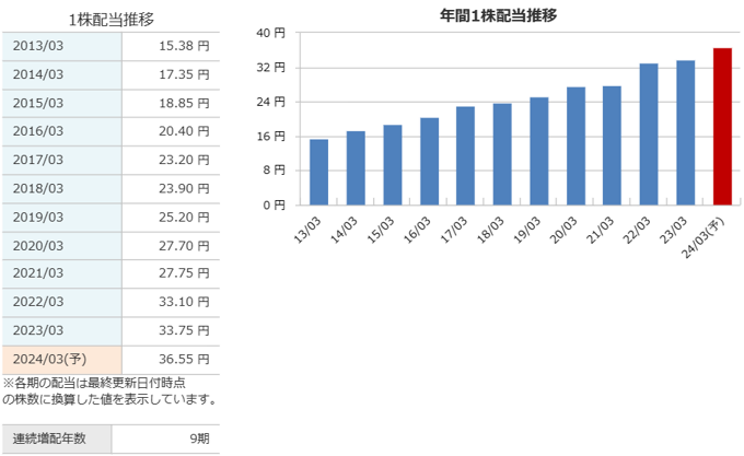 高収益かつ安定成長を続けている企業なので、当面、増配は維持できるでしょう。