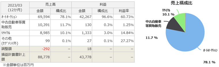 オートオークション事業は、手数料で稼ぐビジネスモデルです。