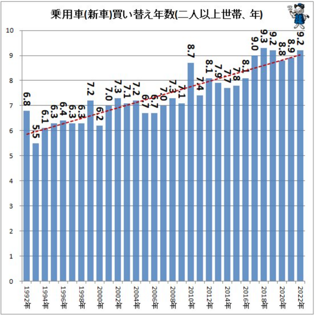 答えは、車の乗り換えサイクルの長期化です。