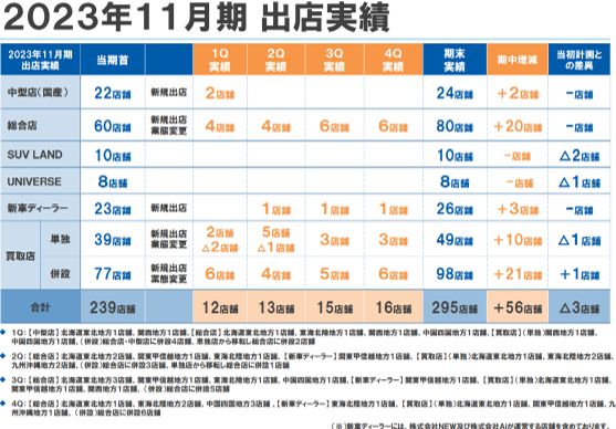 また、ネクステージは、SUV専門店「SUV LAND」や輸入車専門店「UNIVERSE」など、カテゴリー別に複数の専門店ブランドを展開しています。これにより、車種別の販売データの収集、消費者ニーズの分析が容易になり、車両本体の販売利益だけでなく、クロスセル営業(顧客が購入しようとしている商品に加えて、カーナビやセキュリティなど関連商品の購入を促すマーケティング手法)による利益の増加が見込めます。