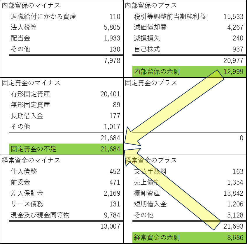 ここでは、キャッシュ・フロー計算書を内部留保、固定資金、経常資金に関する科目ごとに整理し直したとだけ理解していただければ十分です。