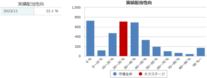 実績配当性向は22.1%と高くはないですが、利益成長に合わせて7期連続増配中です。