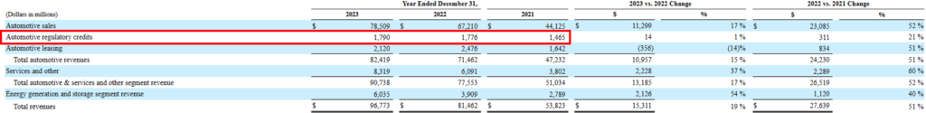 「Automotive regulatory credits」とあるのがカーボンクレジットの項目です。