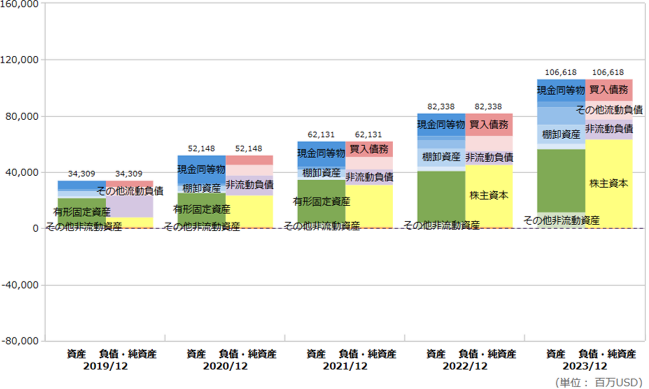 一方、2023年の同社の販売台数は181万台、売上高は96,773百万ドルなので、同年の1台当たりの単価は約5万3千ドルと推定されます。